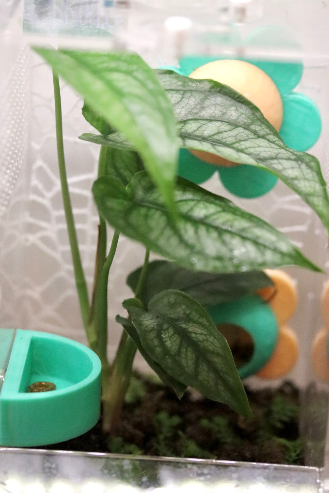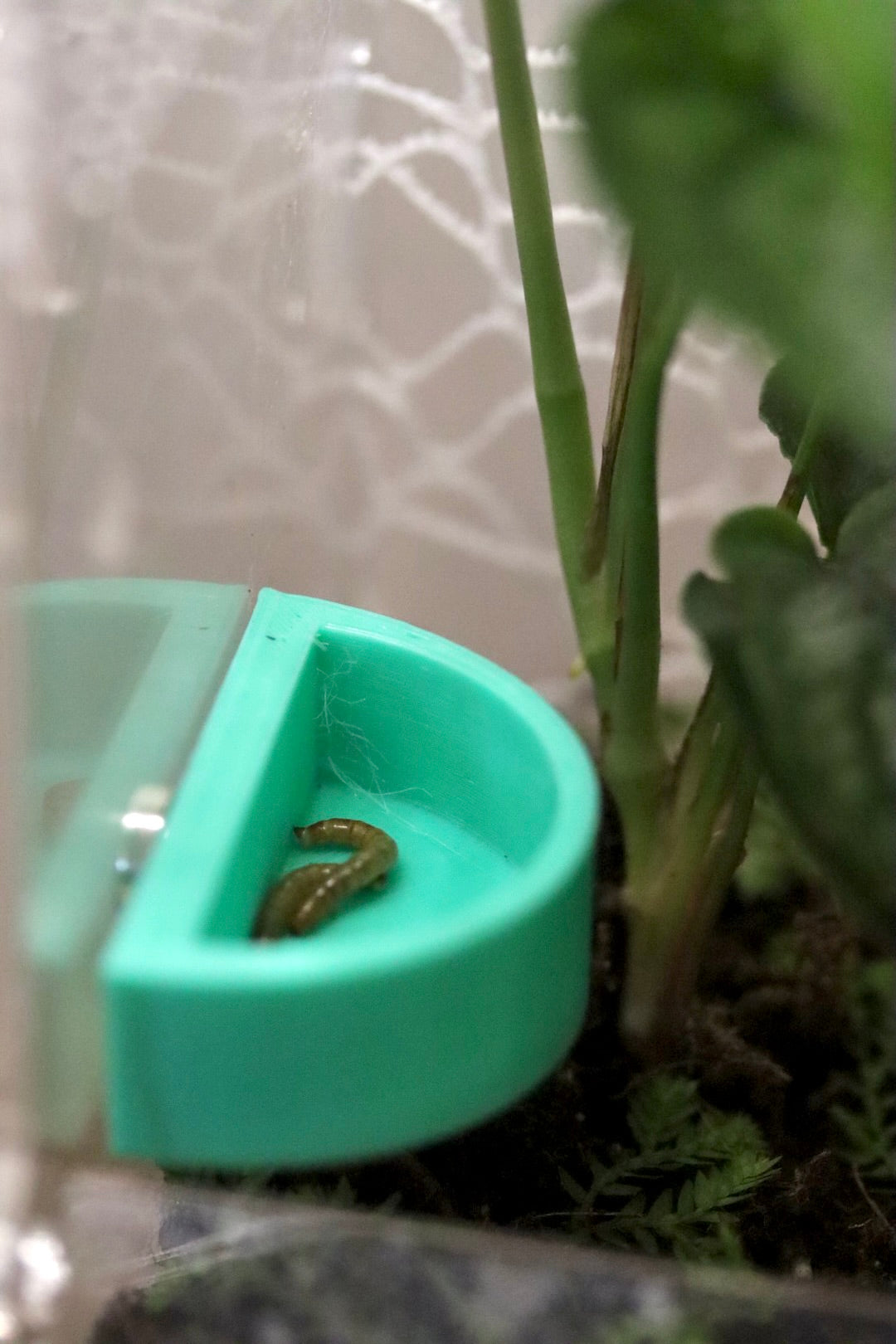 This 3D-printed food bowl for jumping spiders has a low-profile design with a shallow basin, making it easy for the spider to access its food but preventing prey from escaping. The bowl has a stable, flat base to prevent it from tipping over in the enclosure. It's made from a durable, pet-safe material that is easy to clean.