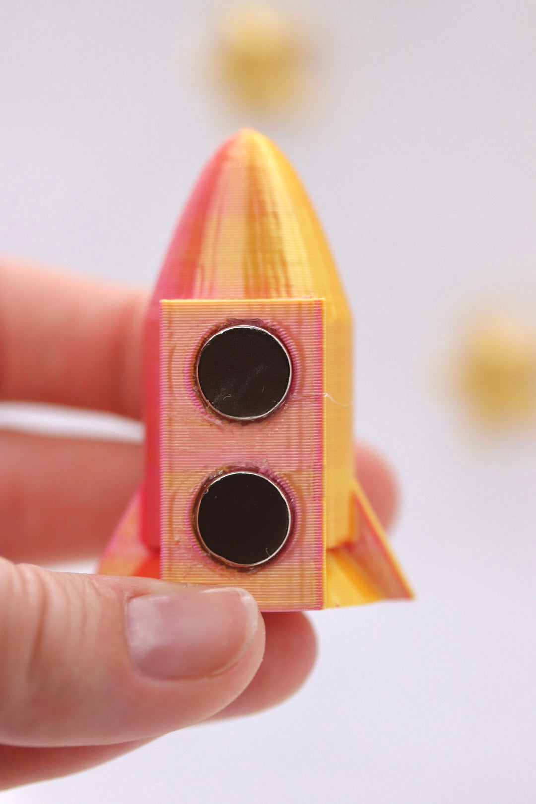 A beautiful space-themed set for your jumping spider! This collection features a shiny, 3D-printed rocket hide and gold star ledges. Magnets on the back allow for easy placement and removal. The rocket hide comes in 3 different colors to allow for fun customization for your set.